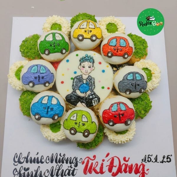 Với lớp vỏ su mềm mại, nhân kem vani béo ngậy và ngọt ngào, bánh su kem là món tráng miệng lý tưởng cho bữa tiệc sinh nhật của bé. Các họa tiết trang trí sáng tạo cùng lời chúc cá nhân hóa sẽ mang đến không khí vui vẻ, ấm áp và ấn tượng cho bữa tiệc sinh nhật của bé yêu.
