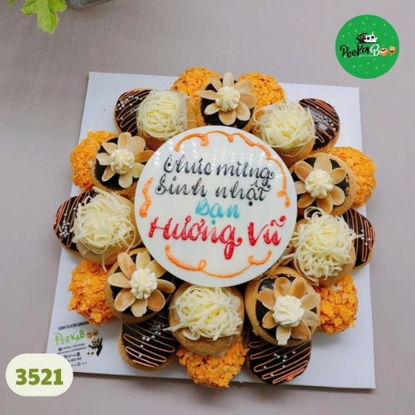 Mẫu bánh này gồm 35 chiếc bánh su kem nhỏ, sắp xếp thành hình tròn với các màu sắc tươi sáng. Đây là món quà hoàn hảo để tặng bạn thân trong dịp sinh nhật.