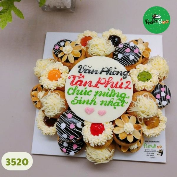 Mẫu bánh này bao gồm 35 chiếc bánh su kem nhỏ, được sắp xếp trong hình tròn với các màu sắc nổi bật. Đây là món quà lý tưởng để tặng gia đình trong dịp Giáng Sinh.