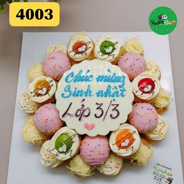 Mẫu bánh này bao gồm 40 chiếc bánh su kem nhỏ, được sắp xếp thành hình tròn với các màu sắc nổi bật, tạo không khí vui tươi cho dịp Giáng Sinh.